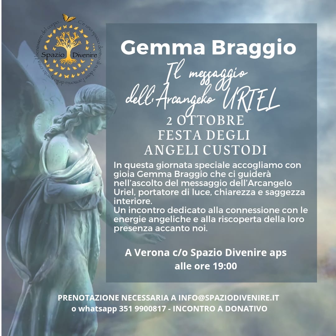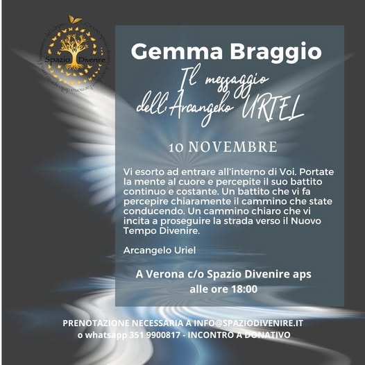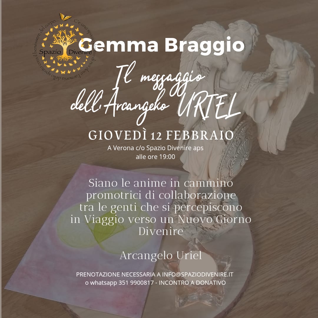 𝐅𝐄𝐒𝐓𝐀 𝐏𝐎𝐑𝐓𝐄 𝐀𝐏𝐄𝐑𝐓𝐄 𝐀 𝐒𝐏𝐀𝐙𝐈𝐎 𝐃𝐈𝐕𝐄𝐍𝐈𝐑𝐄 𝐚𝐩𝐬 𝐚𝐬𝐬𝐨𝐜𝐢𝐚𝐳𝐢𝐨𝐧𝐞 𝐚 𝐕𝐞𝐫𝐨𝐧𝐚 SAB 20/9 | 14:30 𝐵𝑒𝑛𝑣𝑒𝑛𝑢𝑡𝑜 𝑐𝑜𝑛 𝐶𝑒𝑟𝑐ℎ𝑖𝑜 𝐴𝑛𝑔𝑒𝑙𝑖𝑐𝑜 𝑑𝑖 𝐵𝑒𝑛𝑒𝑑𝑖𝑧𝑖𝑜𝑛𝑒 con noi: Gemma Braggio – Messaggera dell’Arcangelo Uriel Da anni si dedica alla canalizzazione di messaggi e frequenze luminose provenienti dall’Arcangelo Uriel, guida di saggezza, chiarezza e trasformazione interiore. Attraverso la sua sensibilità e la connessione diretta con il mondo angelico, Gemma accompagna le persone a ritrovare pace, fiducia e allineamento con il proprio cammino dell’anima.
