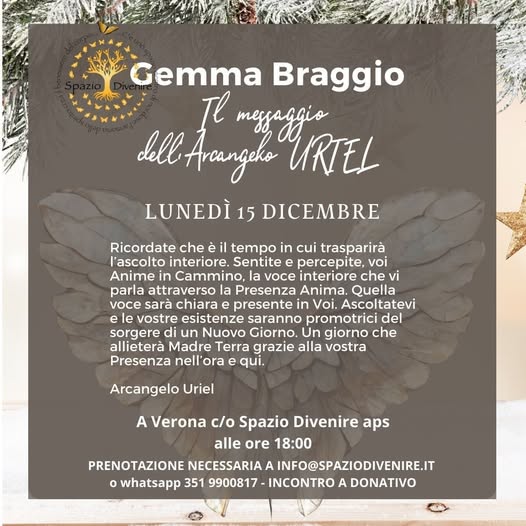 Verona 15 dicembre 2025 ore 18:00 presso centro Spazio Divenire, incontro a donativo. Prenotazione necessaria a Carla whatsapp 340 145 1001 o info@spaziodivenire.it.